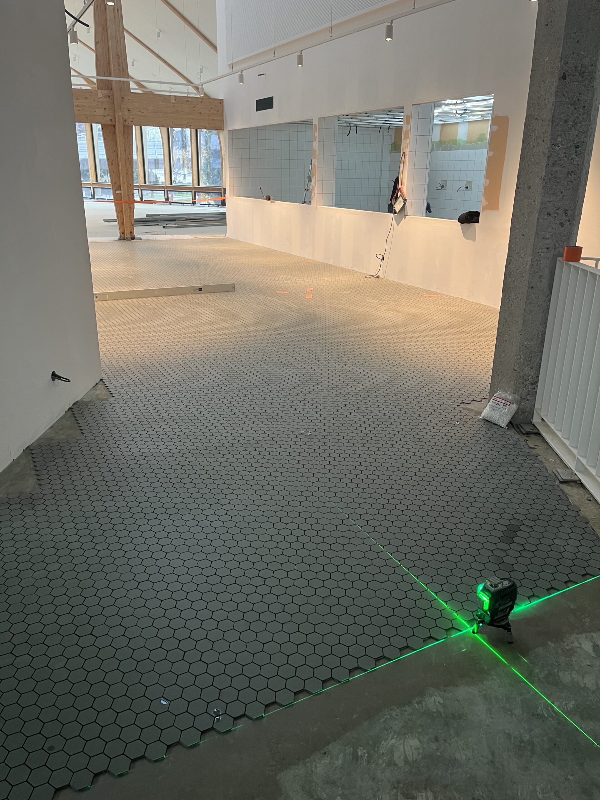 Pose du carrelage Winckelmans au R+1 du restaurant Universitaire l’Etoile à Rennes par l’entreprise BREL.
