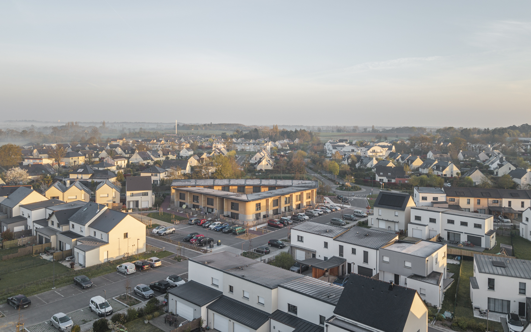 Ainsi, alliant les qualités du logement individuel et la densité d’un habitat collectif, cette architecture développe une couronne bâtie abritant un jardin partagé à destination de tous les usagers.